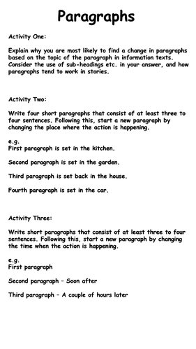 Search for jobs related to When to start a new paragraph pdf or hire on the worlds largest freelancing marketplace with 21m jobs. Paragraph breaks and paragraph indentations are an important aspect of formal writing. With a title explanatory page there are 9 pages - 5 x fiction and 4 x non-fiction.