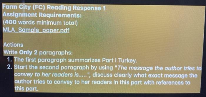 Farm City Fc Reading Response 1 Assignment Chegg Com